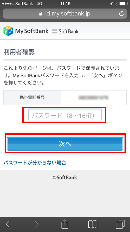 【3】「My SoftBankにログイン」ボタンを押す