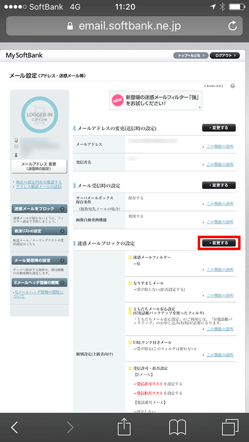 【8】迷惑メールブロック欄の「設定する」ボタンを押す