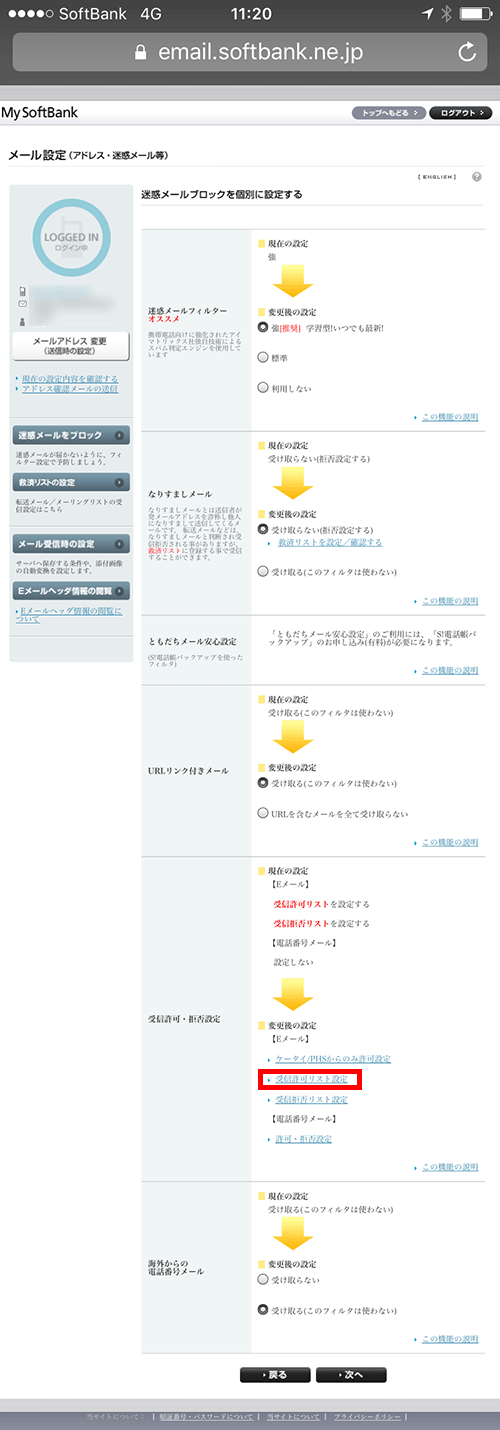 ■ソフトバンクの受信許可設定の方法