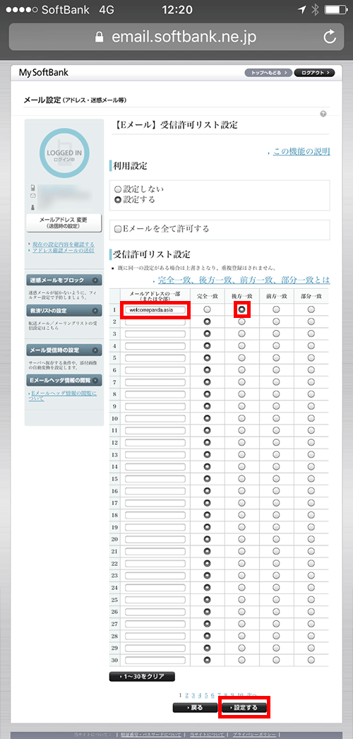 【11】受信許可リストで「メールアドレスの一致」へ