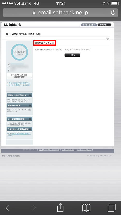 ソフトバンクの方は以下の設定をご確認ください。